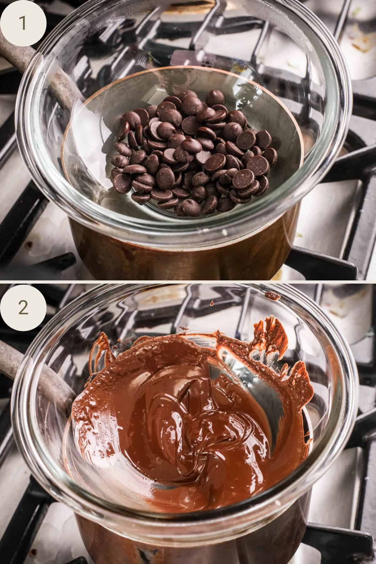 1. Grate or process your chocolate very finely in a food processor so it’s as small as possible and place in a heatproof bowl.