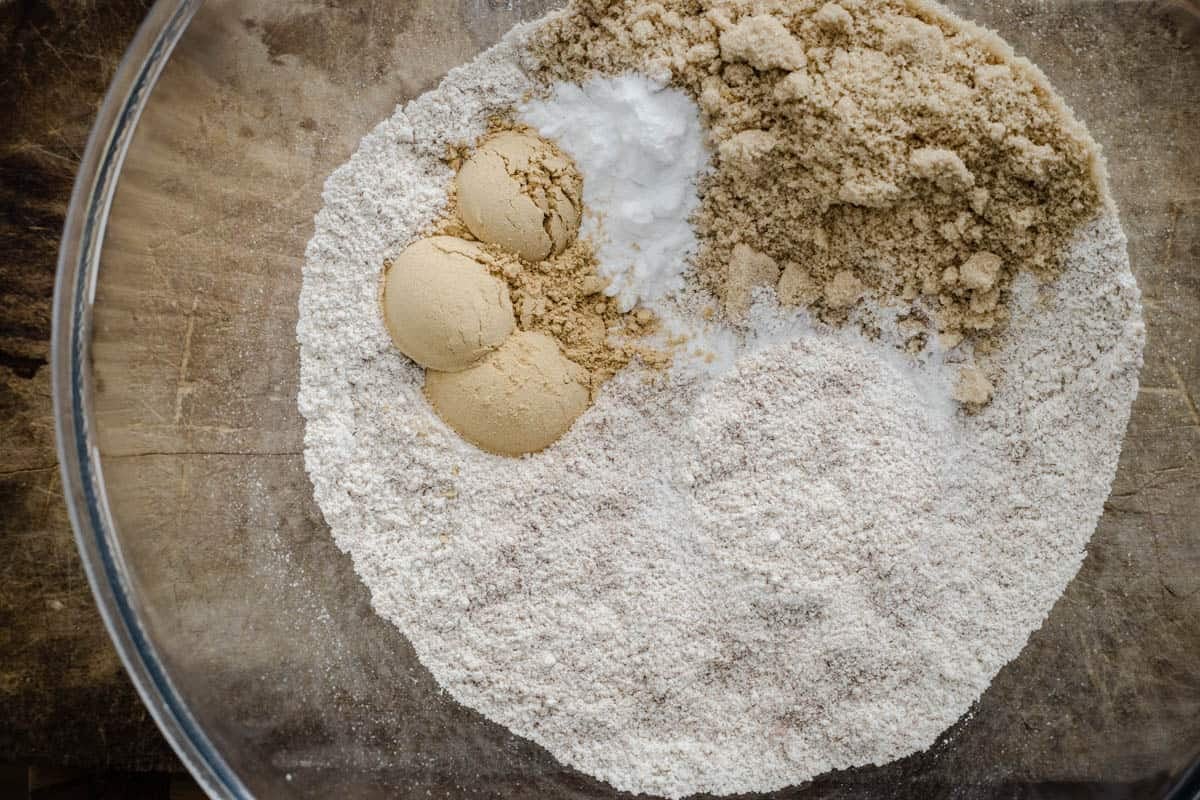 - Sift together the teff flour, almond flour, sugar, bicarbonate of soda, salt and ground ginger in a large mixing bowl.