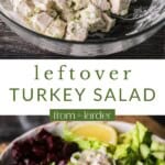 Turkey. This recipe is technically for leftover turkey but I use this same one for leftover roast chicken. Sometimes I even cook chicken or turkey breast in the Instant Pot specifically so I can enjoy this salad throughout the week, itโs not just for leftovers. You can use white or dark meat and use it shredded or diced.