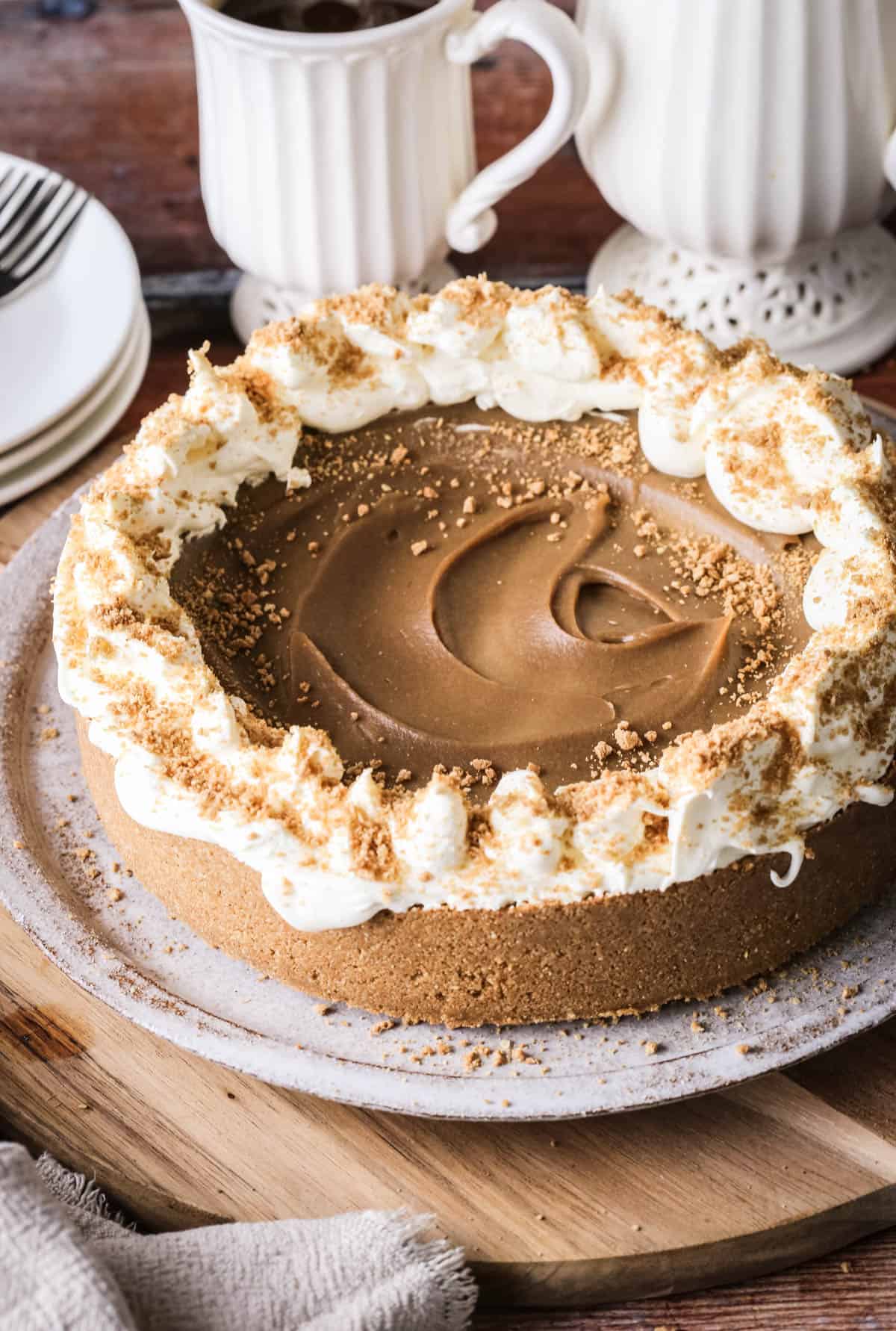 Speculoos style biscuits. I used gluten-free biscuits for the biscuit crust and I particularly recommend Nairnโs Caramelised Biscuit Moments which are very delicious (but do contain oats if you need to be careful of that). Otherwise you can use Schar Spekulatius Spiced Biscuits or regular Biscoff Biscuits (if gluten-free ingredients are not necessary for you).